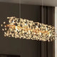 Lustre Moderno Dente de Leão Retangular Cristal Dourado 90cm