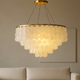 O lustre moderno perfeito para quem busca transformar a decoração com elegância e sofisticação. Este lustre de sala jantar ou lustre quarto combina o estilo luxuoso do lustre italiano com o charme do acabamento dourado e detalhes em concha, sendo também um lustre pendente versátil para qualquer ambiente.