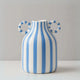O vaso decorativo é o detalhe que faz toda diferença na sua sala, mesa ou prateleira. Este vaso de cerâmica listrado azul com delicadas orelhas não só embeleza, como também funciona como vaso decorativo para plantas ou flores, criando um ambiente sofisticado, moderno e acolhedor.